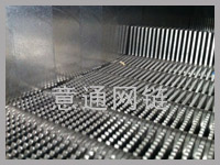 沖片型金屬輸送帶是超聲波清洗機(jī)械和一些重型輸送機(jī)械的專用輸送網(wǎng)帶,其中有防滑的齒形片、直板鏈片、橫向擋板片等,此種輸送帶可以通過(guò)控制鏈片的間距來(lái)控制網(wǎng)孔的大小,還可以通過(guò)隔片來(lái)控制立體型網(wǎng)孔,來(lái)讓工件橫擺,或者豎立在所允許的工件位置。在爬坡,下坡,和高壓沖洗時(shí)不會(huì)出現(xiàn)滑動(dòng),堆積等現(xiàn)象來(lái)影響輸送效果。
